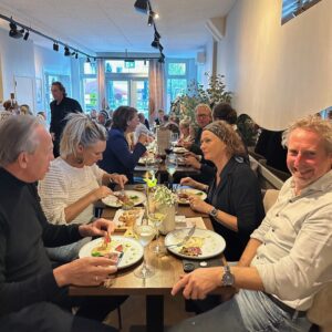 Na het hoofdgerecht gingen we door naar de nieuwe buren van Recht, namelijk een leuke koffietent Koafe op de hoek van de Hoofdstraat en de Van Kinsbergenstraat. Om vervolgens feestelijk af te sluiten bij ’t Achterom aan de Mariastraat.